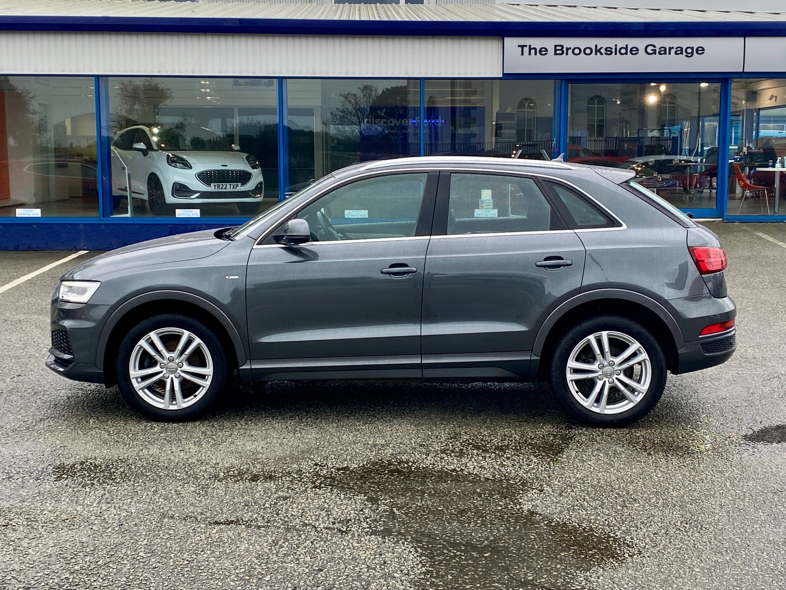 Audi Q3 2.0 TDi 184ps Quattro Automatic S-Line Edition. Finished in Grey. Very Stylish with dependable Quattro drivetrain giving Surefooted handling in all conditions. This car is beautifully finished with quality interior and high specification, with Sat Nav, Climate Control, Cruise Control,Rear Camera, Bluetooth and Heated 1/2 Leather seats.